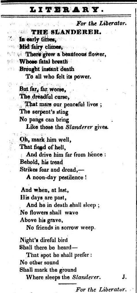 1831-01-29 Poem. “The Slanderer” (The Liberator)