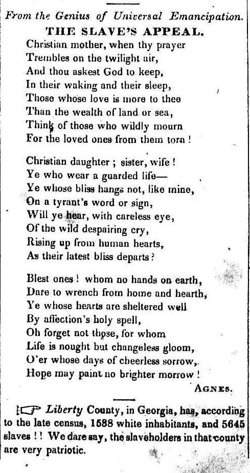 1831-03-26 Poem. “The Slave’s Appeal” (The Liberator)