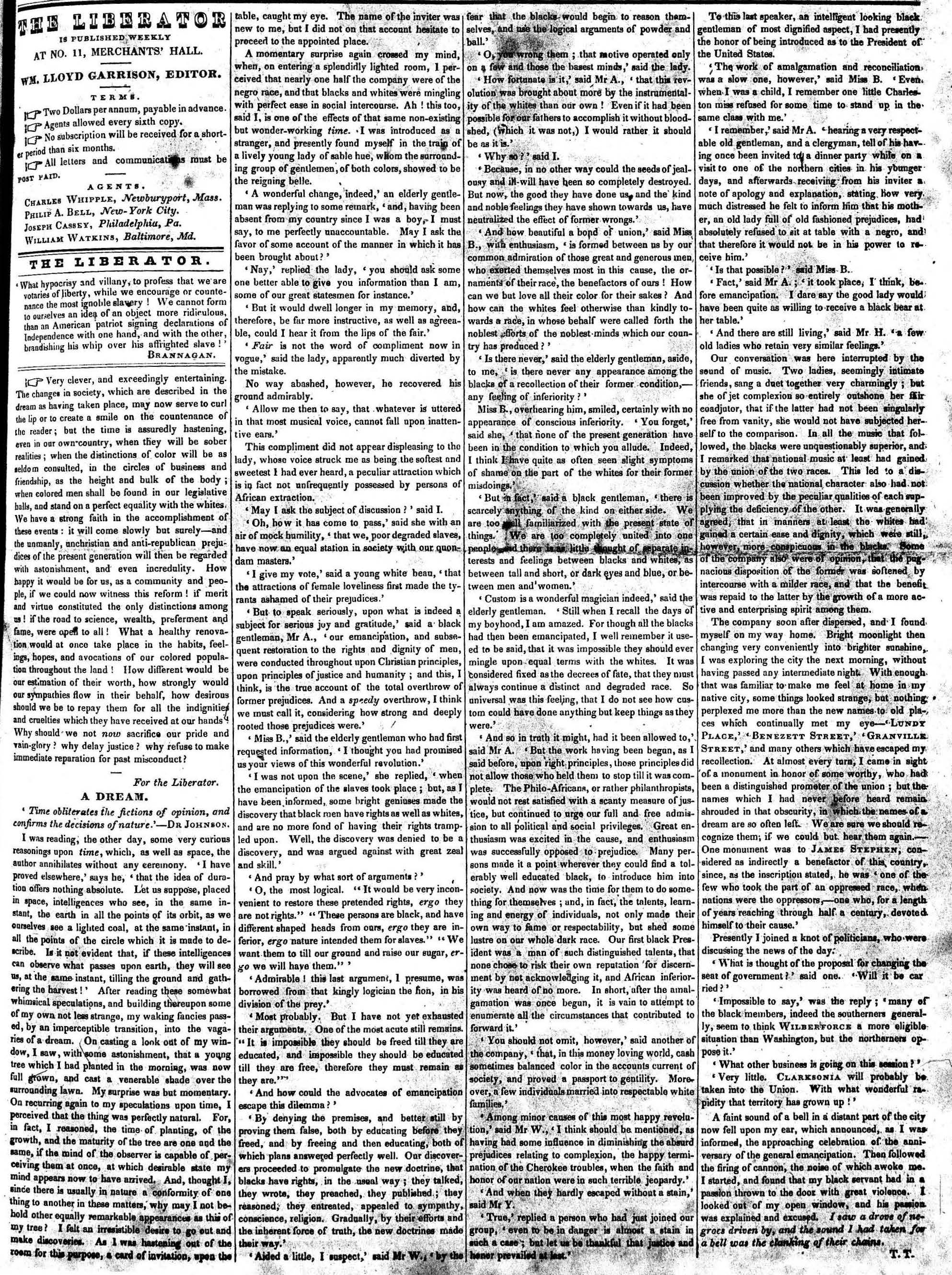 1831-04-02 Short Story. “A Dream” (The Liberator)
