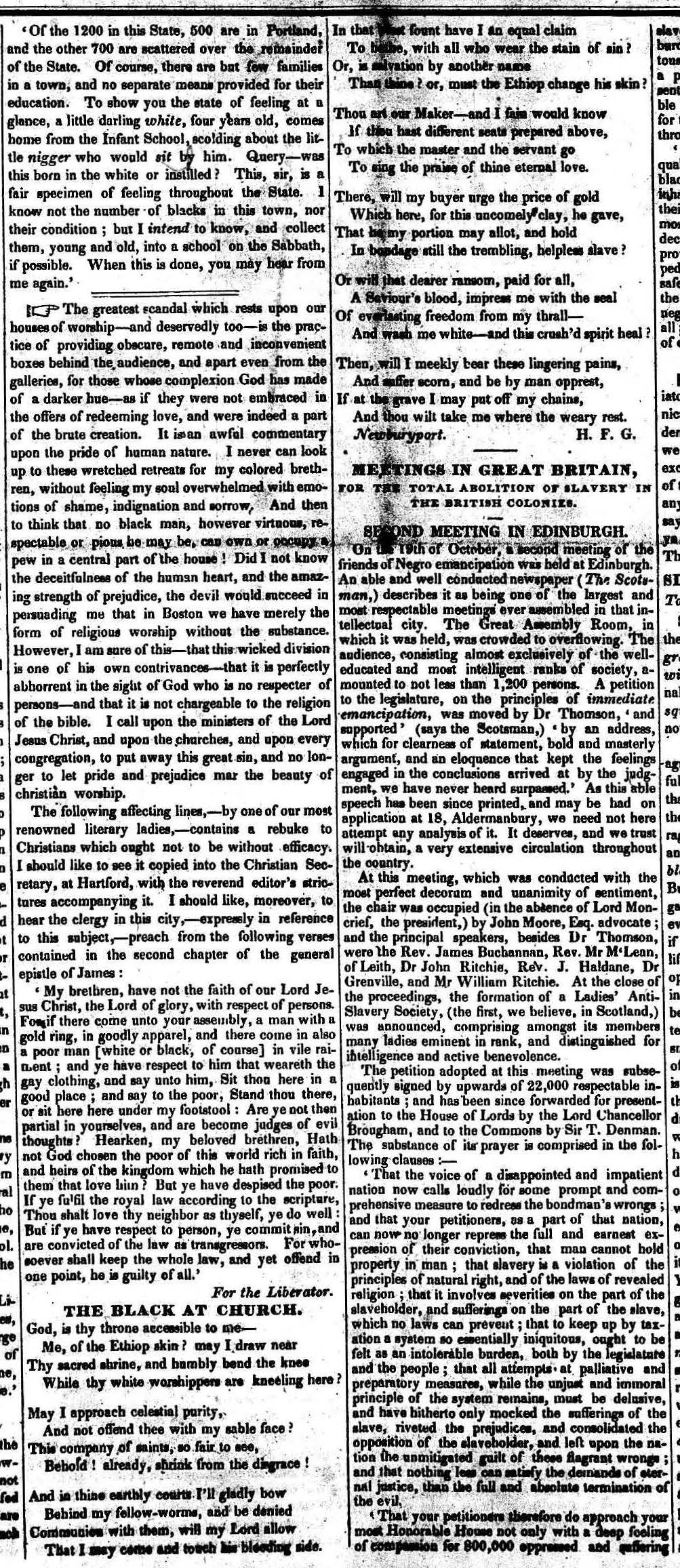 1831-05-21 Poem. “The Black at Church” (The Liberator)