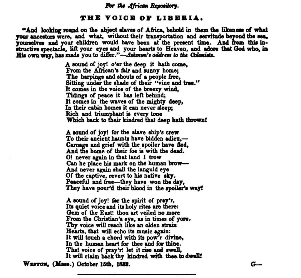 1833-11 Poem. “The Voice of Liberia” (African Repository)