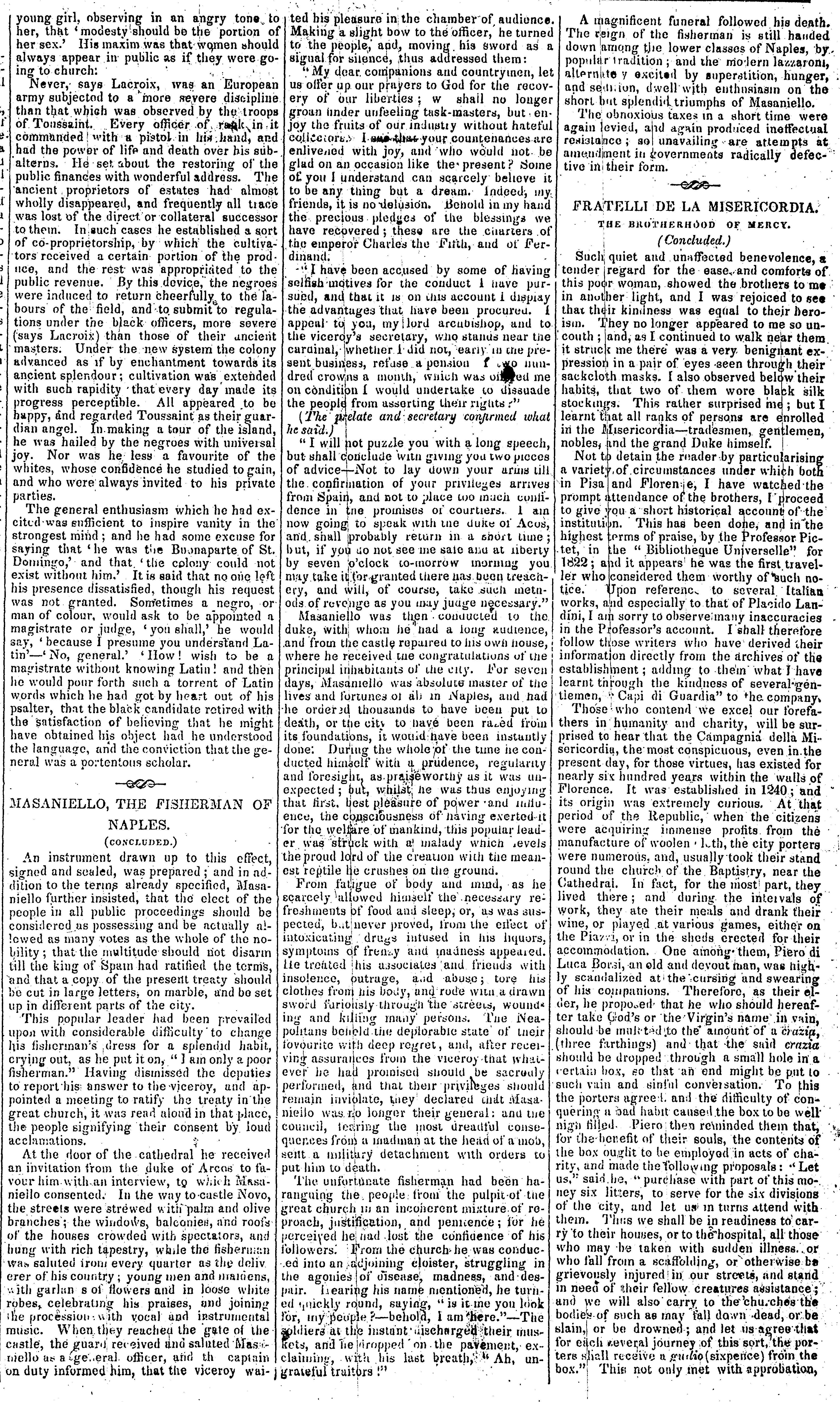 827-05-11 Short Story. “Masaniello, Fisherman of Naples” [2/2] (Freedom’s Journal)