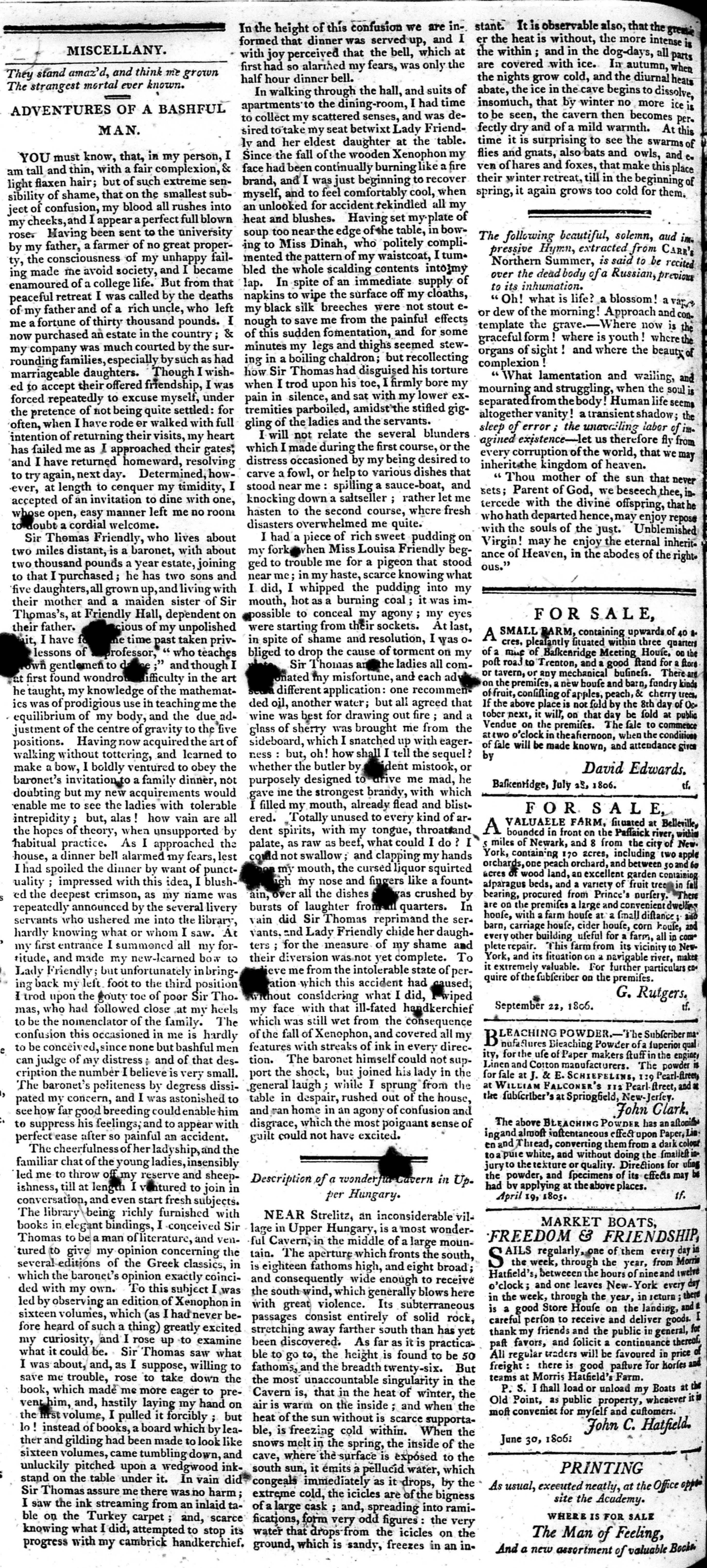 [Anon.], “Adventures of a Bashful Man,” (NJ Journal, 1806; Freedom’s Journal, 1828)