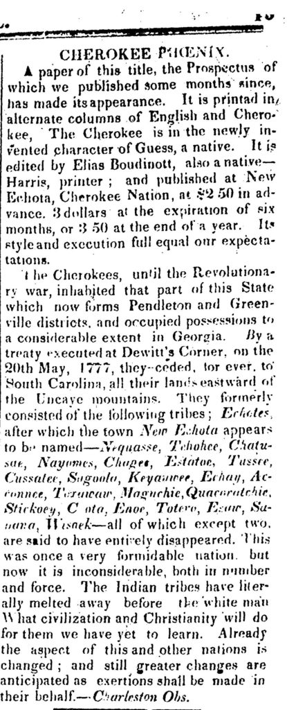 “The Cherokee Phoenix” (Freedom’s Journal, 04 April 1828)